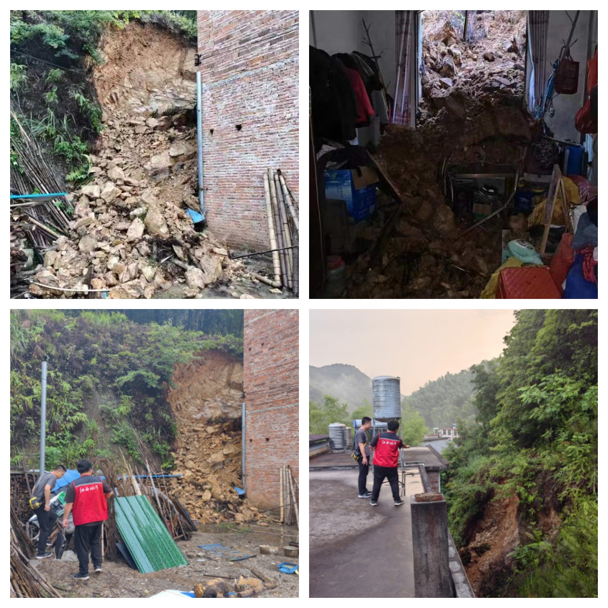 6月3日,吉村鎮(zhèn)突發(fā)短時(shí)強(qiáng)降雨。16時(shí)23分,災(zāi)害風(fēng)險(xiǎn)隱患信息報(bào)送員黃宗鵬巡查時(shí),發(fā)現(xiàn)張家然、蔡光楊、蔡光松等3戶農(nóng)戶屋后坡體不穩(wěn)定,有發(fā)生崩塌的危險(xiǎn),迅速向鎮(zhèn)領(lǐng)導(dǎo)報(bào)告。接報(bào)后,鎮(zhèn)政府于16時(shí)30分通知民主村村干部,要求立即轉(zhuǎn)移受威脅住戶。民主村兩委干部在接到轉(zhuǎn)移通知后,迅速協(xié)同村江壩小組干部,動(dòng)員3戶10人轉(zhuǎn)移,16時(shí)45分人員轉(zhuǎn)移完成。17時(shí)40分左右,3農(nóng)戶屋后坡體發(fā)生崩塌。崩塌體橫向?qū)捈s10米,縱向長(zhǎng)約6米,厚度約2米,崩塌體方量約120立方米,導(dǎo)致張家然房屋窗戶及室內(nèi)物品損壞。由于隱患發(fā)現(xiàn)與報(bào)告及時(shí)、轉(zhuǎn)移處置及時(shí),未造成人員傷亡。崩塌發(fā)生后,因崩塌點(diǎn)仍處于不穩(wěn)定變形中,鎮(zhèn)政府決定在現(xiàn)場(chǎng)拉好警戒線,樹立警示牌,禁止無(wú)關(guān)人員進(jìn)出,并安排群測(cè)群防員24小時(shí)監(jiān)測(cè)。